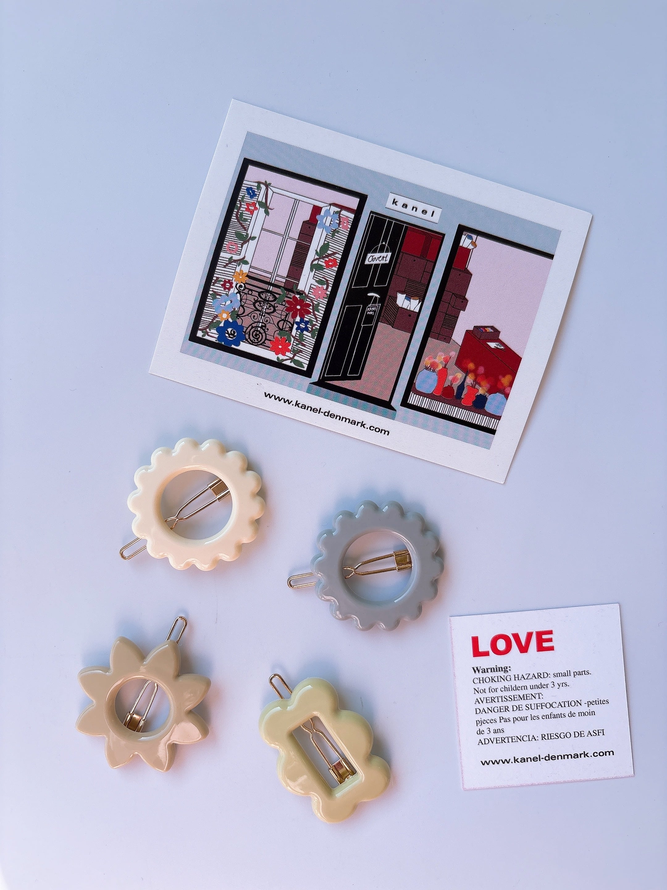 2001年にデンマークで設立されたkanel denmark。ニッケルを100%含まず、REACH証明書を使用したアセタット製のヘアクリップはレトロなデザインとカラーで世界中に愛されています。