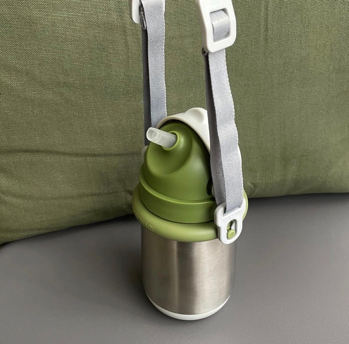 お子様の成長に合わせ、ボトルに付いているハンドルを外し、水筒にステップアップできるALICE専用のショルダーベルトです。